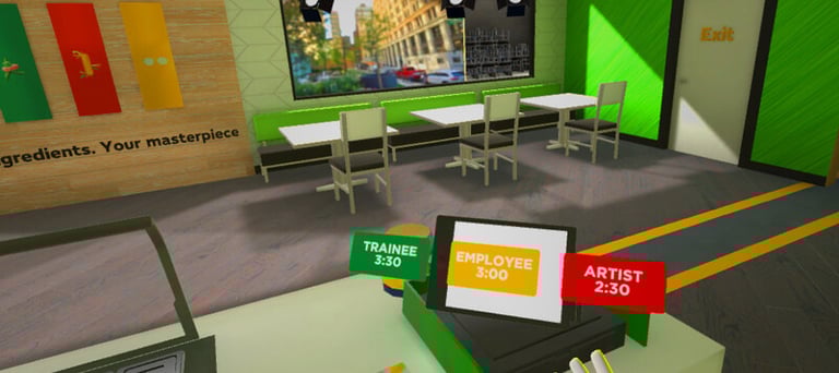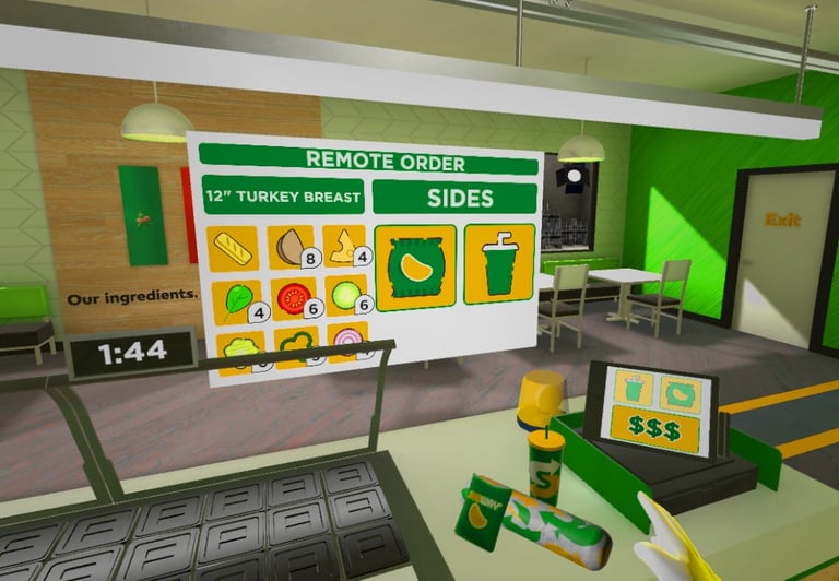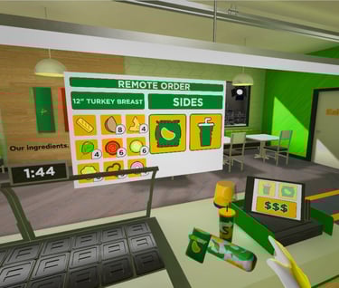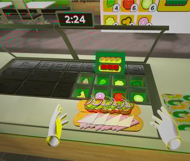 A POC to showcase virtual training for sandwich creation for Subway. Users are tested on the proper order of ingredients and how much of each one. Tracking mistakes along with time, users can compete to see how well they know their art.