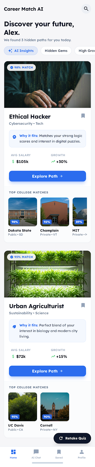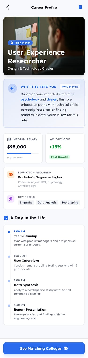 Helping young students figure out a realistic career plan based on what they enjoy and strive in. A pathway to success and careers not typically seen.